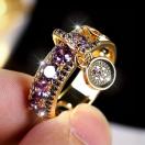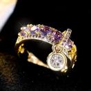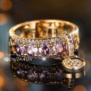 ボヘミアン風銅リング、紫ディスクペンダント、キュービックジルコニア