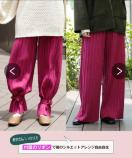 ┗裾を結ぶリボン2本付き。ポケット2個。裾カット出来ます!裏地なしなのでゴワつかず履きやすいです♪ウエストゴムで楽チン♪プリーツで伸縮性があり動きやすい♪フェイクスエードの様な暖かみのある厚手ポリエステル素材で柔らかくスルスル履けて快適です♪ハイウエストで股上も深くて透けなくて安心♪春秋冬の3シーズン着回せます♪ゆったりワイドシルエットで体型カバー♪柔らかくて落ち感がお洒落で形も綺麗♪鮮やかな色が映えてプリーツで足が長く見えますよ♪裾をリボンで絞ってジョガーパンツ風に2wayで楽しめます♪お洒落可愛いロングプリーツイージーワイドパンツです☆
