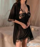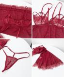 透かし彫りのレースやセクシーな胸元のデザインが施され、セクシーでロマンチックな雰囲気を演出してくれるベビードール・Tバックショーツ・ガウンの3点セットです