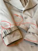 まだまだ着て頂けますが、小さい汚れが多々あるのと襟内側に変色、袖のベルト部分に黒い汚れ、ベルト部分の金具にくすみがあります。(画像有り)