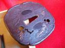 しっとり感のある鉄地に花・実を彫り込み金象嵌で表現し緑を返し耳にした重量感ある鐔です締切日時