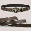 ヒップホップトレンディなブルヘッドバックルベルト、レトロリベットデコレンボスベルト、男性用