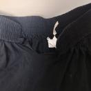 リブ裾のブラックサルエルパンツ、快適なゴムウエストデザイン。