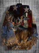 鹿狩り3Dプリント入りメンズスポーツポリエステルパーカー - フード付きカジュアルアウトドアアクティブウェア、伸縮性のあるニット生地、レギュラーフィット幾何学模様フード付きトップ