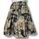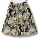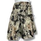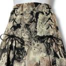 フロントがスウェード調の革紐リボンでスピンドルになったボックスプリーツの膝丈スカート