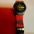 アンティークな時計です。現在も動いています。時間も正確ですがいつ電池が切れてもおかしくはないので電池切れと言う事にしておきます。ベルトも当時の物で純正です。このカラーは人気で激レア入所困難です。