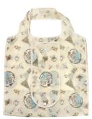 ディズニーの「美女と野獣」デザインのベージュ折りたたみマルシェバッグ。