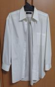 ホワイトの長袖Yシャツ、ポケット付きデザイン。