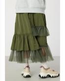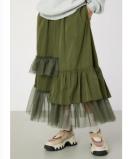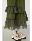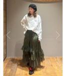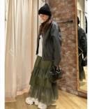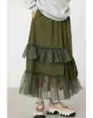 無造作なフリルのデザインが特徴のナイロンチュールフリルスカート。ランダムなフリルが、シンプルながらも動きのあるスタイルを演出。どんなコーディネートにも華やかさをプラスしてくれます。ウエスト部分はゴム仕様で、リラックスした着心地を実現。シンプルなスウェットと合わせてカジュアルに着こなしたり、オーバーサイズのニットやカーディガンを合わせたスタイリングもおすすめです。