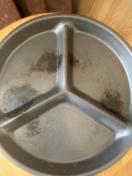 元から箱は無く密封セロハンに包まれていて、そこに品質表示が載っていたのですが自身が開封し、仕切りで混ざらず3種類焼けるので試してみたく、2度程使用し、薄くて軽いのですが火の通りが、かなり早く、焦げ跡付けてしまいました。