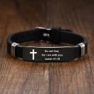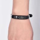 男性向けのステンレススチールの聖書の言葉ブレスレット、「恐れずに、私があなたと共にいる」というイザヤ書41:10の言葉、調節可能なブラックストラップ、ファッショナブルな男性の宗教的なジュエリー