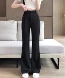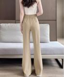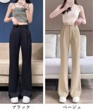 無地パンツ 細見え/体型カバー長ズボン/バックウエストゴム