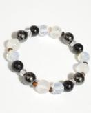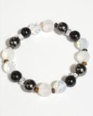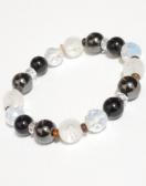 ★六字真言彫りのフロスト水晶、センシティックオパール、ボツワナアゲートのボタンcut、水晶ボタンcut、ブラックトルマリン、ヘマタイトのブレスです