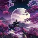 絵画1点、モダンな抽象山水油絵、紫色の背景、月、木、ポスター、ヴィンテージインク、アートプリント壁、リビングルーム&ホーム用、(フレームなし)