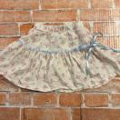 花柄デザインのクリーム色スカート、青いリボン付きで可愛らしい印象。