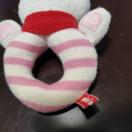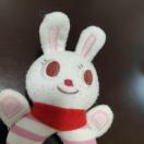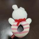 柔らかい布製のうさぎ型ラトル、持ちやすいリング型デザイン。