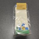 家のイラストが特徴的なキッズ靴下、クリーム色のベースにカラフルなデザイン。