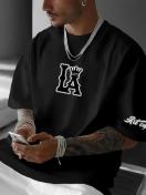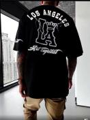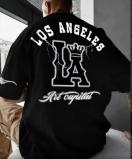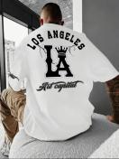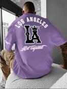 ロサンゼルスの文字と大きなLAパターンプリントが施されたメンズカジュアルTシャツ、快適で通気性がありわずかに伸縮性があり、家庭用およびアウトドアスポーツに最適な春夏用トップ、洗濯機可、スタイリッシュなラウンドネック半袖
