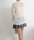シンプルでありながら、トレンド感たっぷりの透かし編みカーディガンです