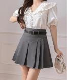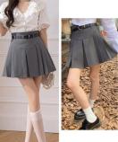 女性らしいシルエットを演出するベルト付きミニプリーツスカートです