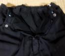 ウエストはゴムで、前たてはファスナーとスナップボタンで留めるようにもなっています。