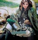 コレクションでもモデルさんが草原柄ジャケットと草原にうさぎ柄ワンピースにストールのようにセーターを腰に巻いて登場しています