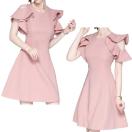 フレアーのお袖からチラ見えする肩出しスタイルがセクシーなワンピース。全体的にエレガントなデザインで上品なピンクなので、デートにピッタリの1枚!!!これで落ちない男性はいない!?