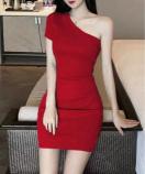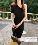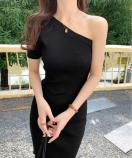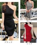 上品さとセクシーさを兼ね備えたワンショルダーデザインが魅力のリブニットワンピースです