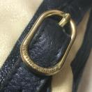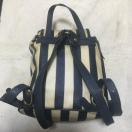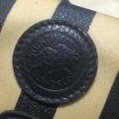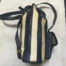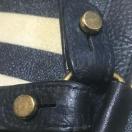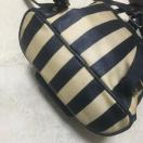 アウターはベージュとブラックのストライプPVCでパイピングやストラップはブラックレザーです。