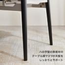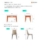 テーブル 主要材料:ラバーウッド 左脚/右脚/側面補強板:ラバーウッド+メラミン板+天板:組み合わせテーブルフレーム 椅子 主要材料:スチール+ウレタン+合皮:背もたれ、座面補助材料:ブラックスチール:脚