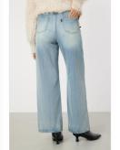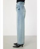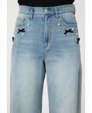 両サイドのポケットにデザインされたリボンとビーズの装飾がレディライクなデニム。程よくワイドなシルエットなので、ショート丈のトップスに合わせたり、裾をインして着用するのがおすすめです。