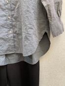 シワ加工がされた、スモーキーグリーンのシャツです。