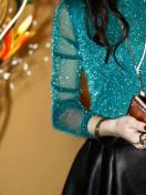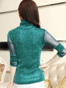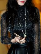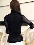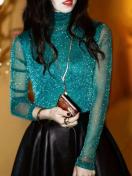 キラキラメッシュタートルネックTシャツ、エレガントな長袖Tシャツ 春と秋に、レディース服