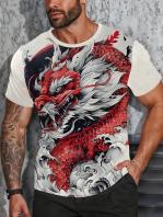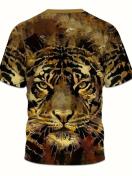 メンズ3Dタイガープリント半袖Tシャツ、カジュアルクルーネックポリエステルティー、レギュラーフィットの夏用ニット生地トップ -
