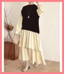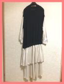 リエディのかわいいニットベストコンビアシメフリルマキシワンピースです。