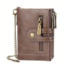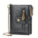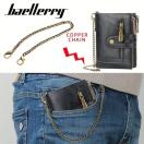 バエラリー メンズ レトロ短財布、PUレザー、多機能、チェーン付き、防盗