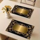 エレガントなゴールデンパターのリネンプレースマットセット、汚れに強く、簡単に洗える、食事、コーヒーテーブル、キッチン、家庭、ホテルに最適、ホリデーパーティーに最適、手洗いのみ、100% リネン、長方形、織り