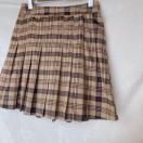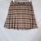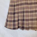 茶系チェックのプリーツミニスカートで、カジュアルにもフォーマルにも合わせやすいデザインです。