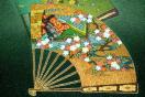 ・暈し染め 金彩 手描き 源氏物語扇面絵図の