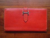 コンパクトでスリムな手のひらサイズなので、女性でも使いやすい二つ折り財布です。