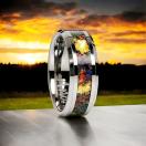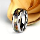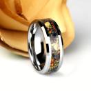 ブロークンブラックファイアオパルウェディングリング、8mmタングステン合金ウェディングリング、メンズ&ウィメンズウェディングリング、ファイアオパルリング