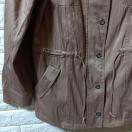 袖口ボタン。フロントジップとボタンのダブル開閉。ジップを全部閉めるとスタンドカラーになる光沢あるカフェブラウンのLattimoreトレンチコート、ウエスト調整可能なデザインです締切日時