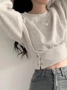 女性用ヘザーグレークルーネックプルオーバー、ボタンディテール、ソフトなポリエステル混紡、春秋に最適、カジュアル chic