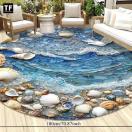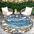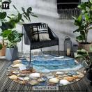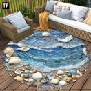 コースタルチャーム ラウンドエリアマット、89.92cm - 滑り止め付きの柔らかいポリエステル、簡単にクリーニング、海洋シェルパターン - 屋外スペース、パティオ、RV、ピクニック、春夏の装飾に最適、パティオデコレーション|ナウティカルデザイン|ポリエステルマット