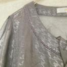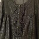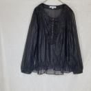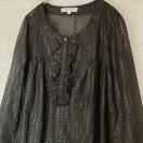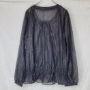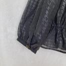 フリルとボタンが特徴のシースルーの千鳥柄ブラックチュニック。