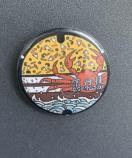 京丹後市の魅力を凝縮!ズワイガニとばら寿司デザインマンホール缶バッジ