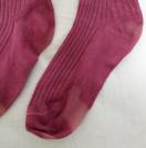 リブ編みデザインのバーガンディまたは、エンジのソックス、使用感あり。