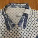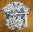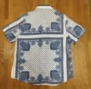 青と白のソレイアードプリントが特徴的なUNITED COLORS OF BENETTONの少し厚手のコットンの半袖シャツ。