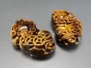 AA+色合い良好天然石タイガーアイ金銭ヒキュウ彫り中大サイズ2個ペア 単品サイズ約41.x27x16mm