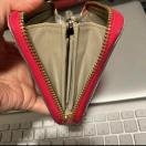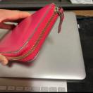 ケイトスペードの鮮やかなピンク/レッドカラーの上質なレザーで仕上げられた財布です♪